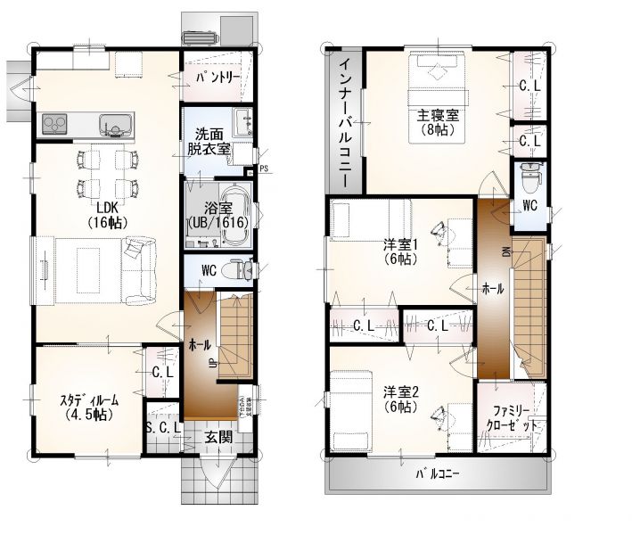 | 間取り | 4LDK | 間取り内訳 | LDK16,洋4.5,洋6,洋6,洋8 |